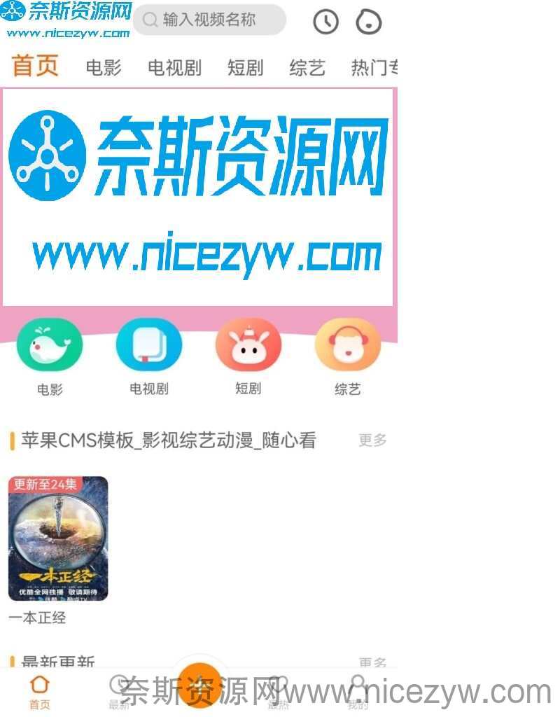 7.手机端底部导航增加大按钮缓动特效,增加“最新更新”和“影视排行榜”入口