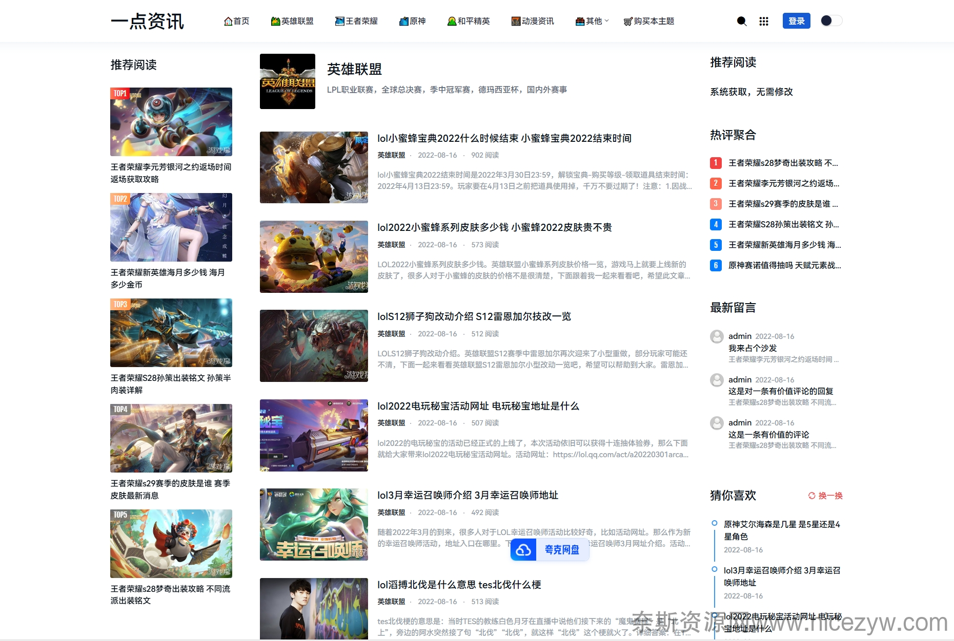 游戏攻略新闻资讯主题模板源码 YK一点资讯模版 zblog主题模版