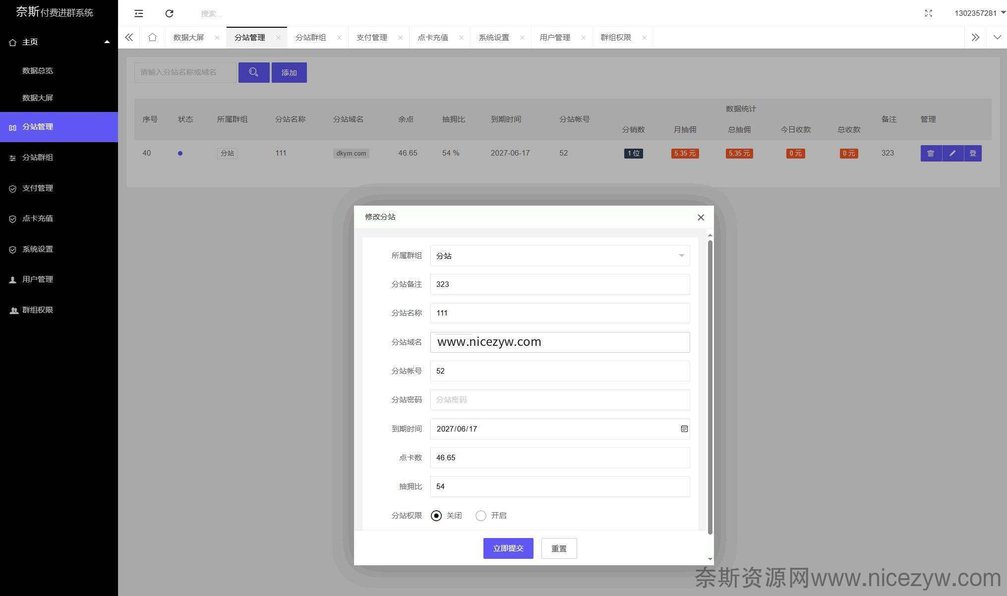 支持分站功能,可无限添加分站,分站可单独设置支付接口