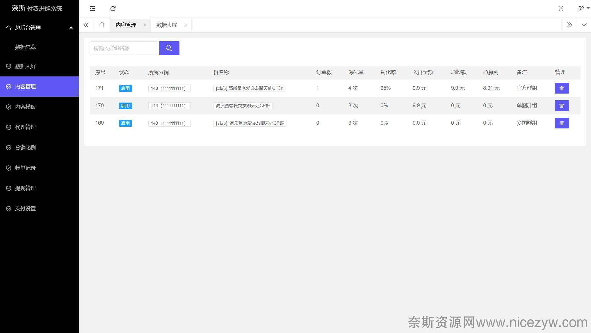 支持代理功能,可设置代理利润,支持代理提现