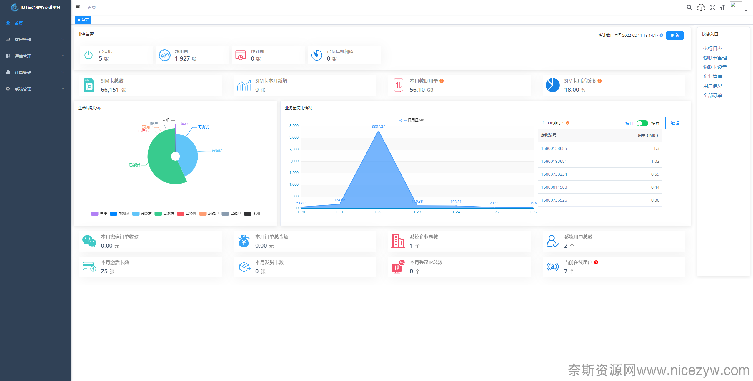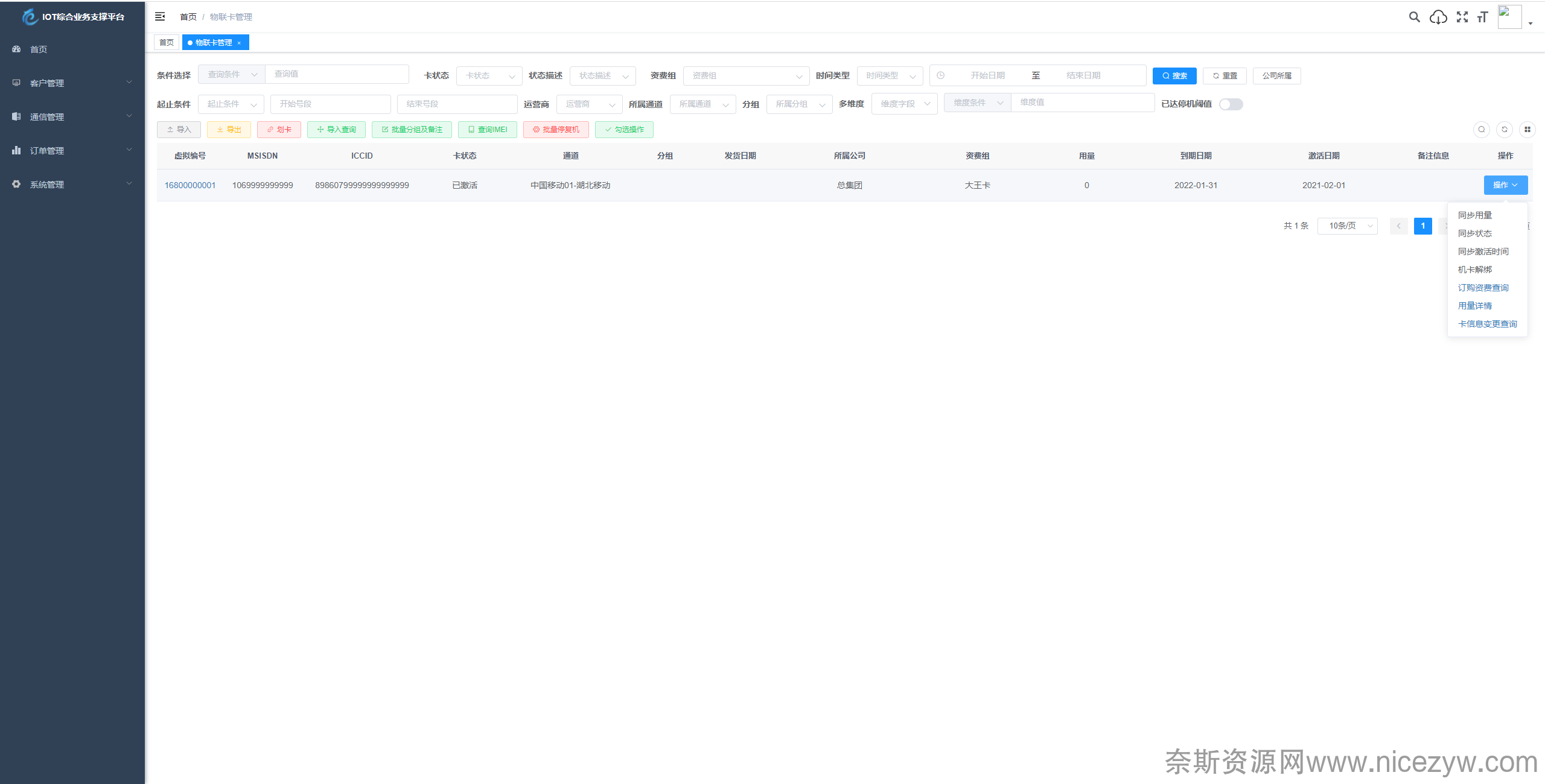 物联网管理系统源码 号卡智能管理平台 轻量级物联网综合业务支撑平台