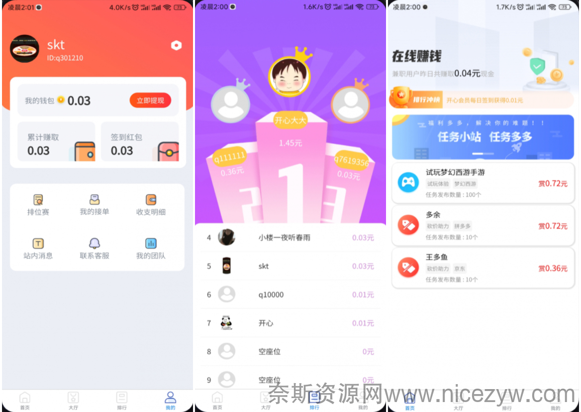 1.前端用户端:任务列表(支持筛选、排序)、任务详情(展示要求、奖励、截止时间)、接单操作、任务提交与审核、钱包(余额查看、提现申请)、消息通知(审核结果、提现进度);