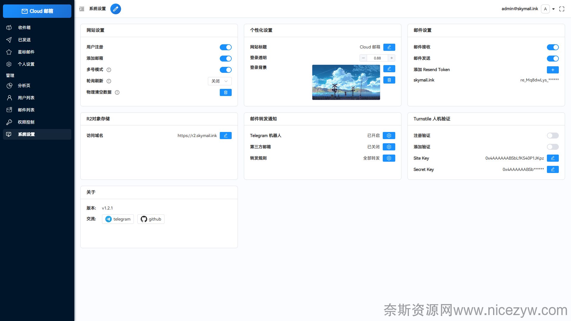 附件收发:支持收发附件,使用R2对象存储保存和下载文件