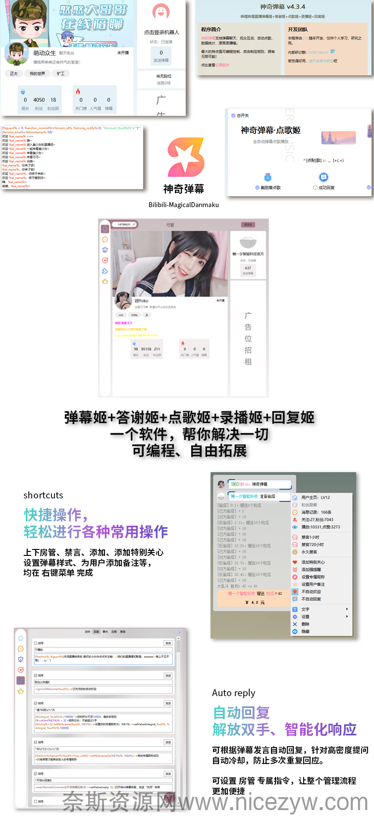 整合弹幕姬+答谢姬+点歌姬+回复姬+多种大模型AI+工作流(workflow),支持弹幕聊天、观众互动与管理、数据统计与分析、自动点歌、私信处理、AI自动闲聊、AI直播建议等。最大的特点是可编程控制,像搭积木一样设置各种互动规则,打造专属直播风格!