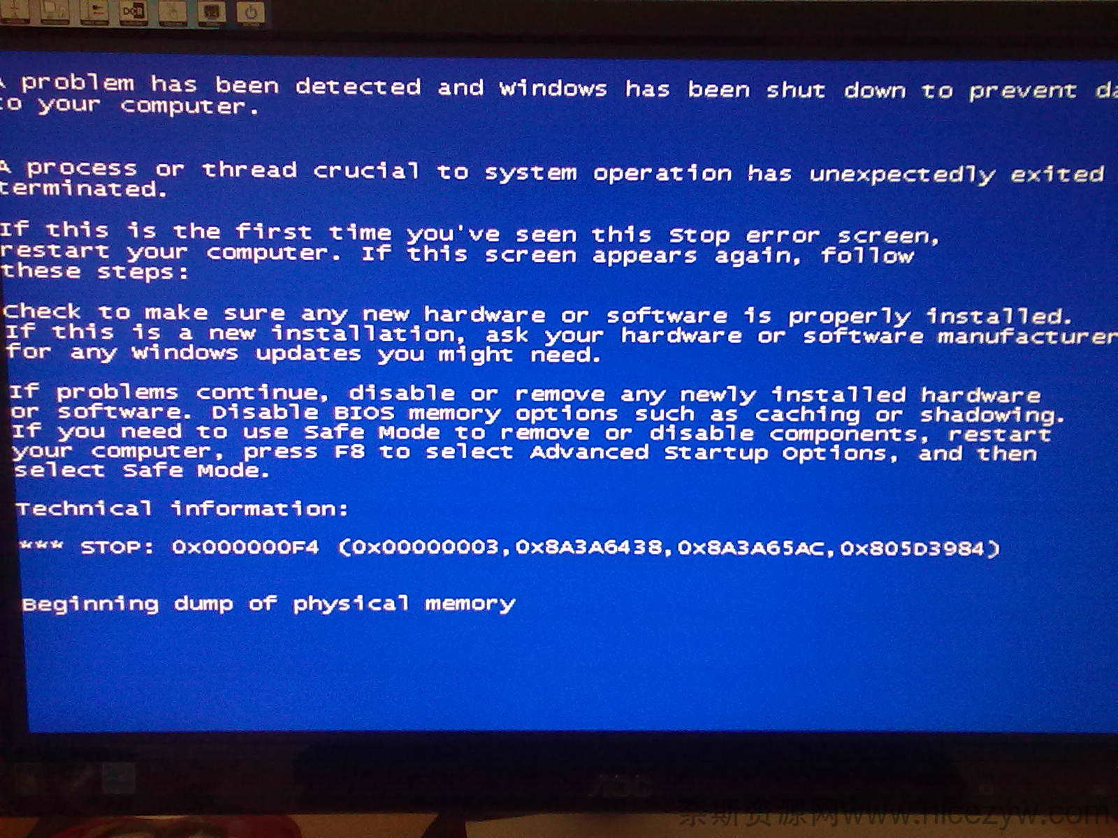 当执行了错误的程序或代码,使系统形成了死循环,于是有限的资源被投入到无穷无尽的重复运算中,最后由于资源耗尽死机;另外运行了太多的程序,使得内存资源不足,也会使资源耗尽而死机。例如在Windows 98下,由于内存管理的缺陷,一般打开35个窗口就可能造成系统蓝屏死机。